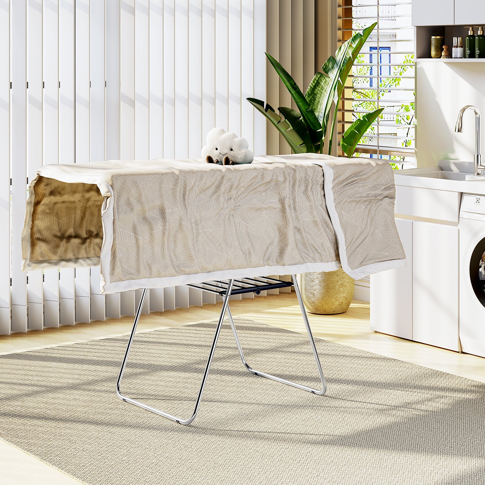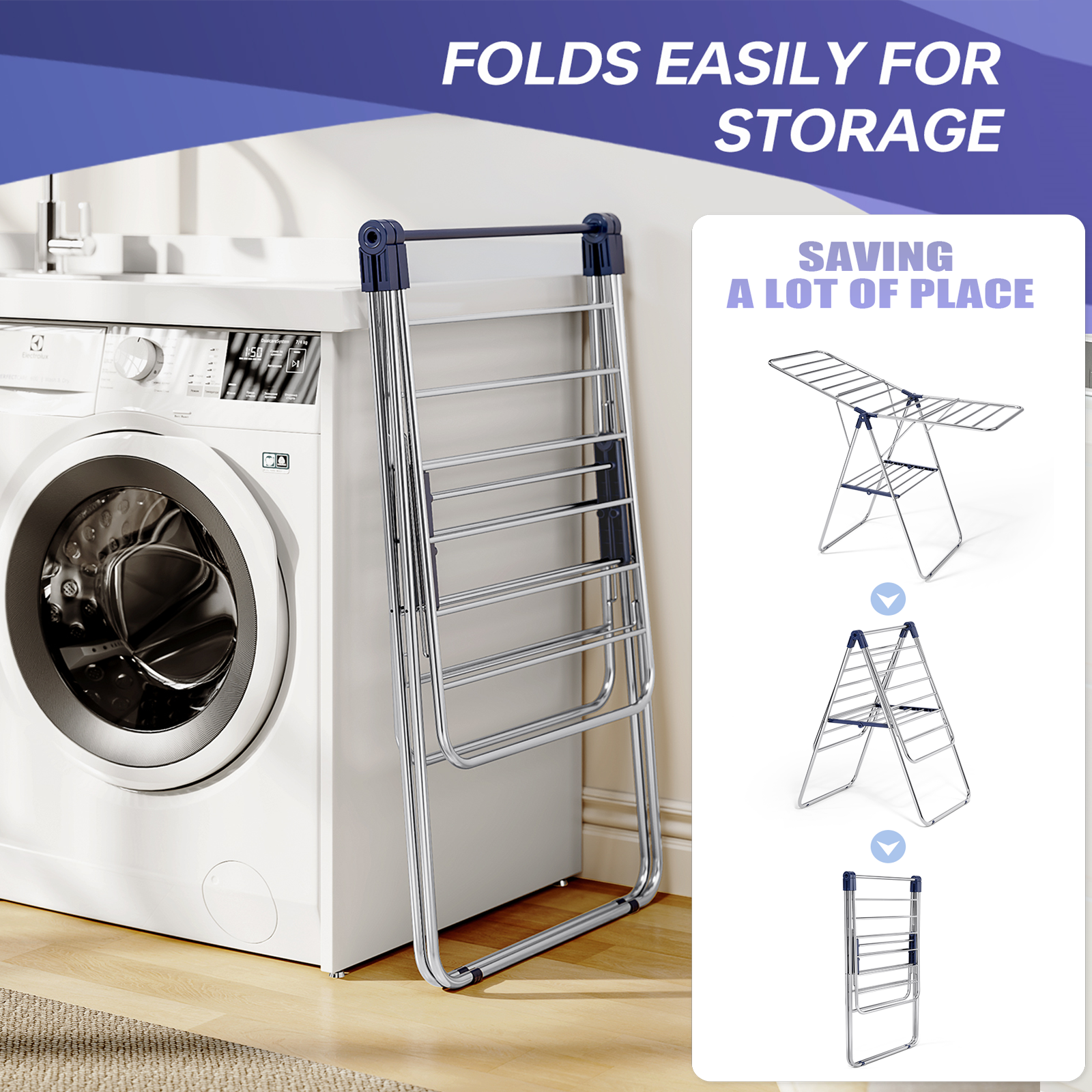 Clothes Drying Rack, KK KINGRACK Foldable Drying Rack with 2 Gullwings & Height-Adjustable, Large-Capacity Laundry Drying Rack, Indoor Outdoor, Stainless Steel(158206)