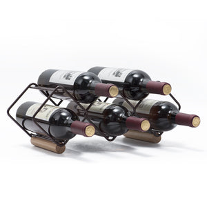 Tabletop Wine Rack, 5 Bottle Wine Holder Storage Stand, Set of 1, Wood & Metal(Copper)-WK130943
